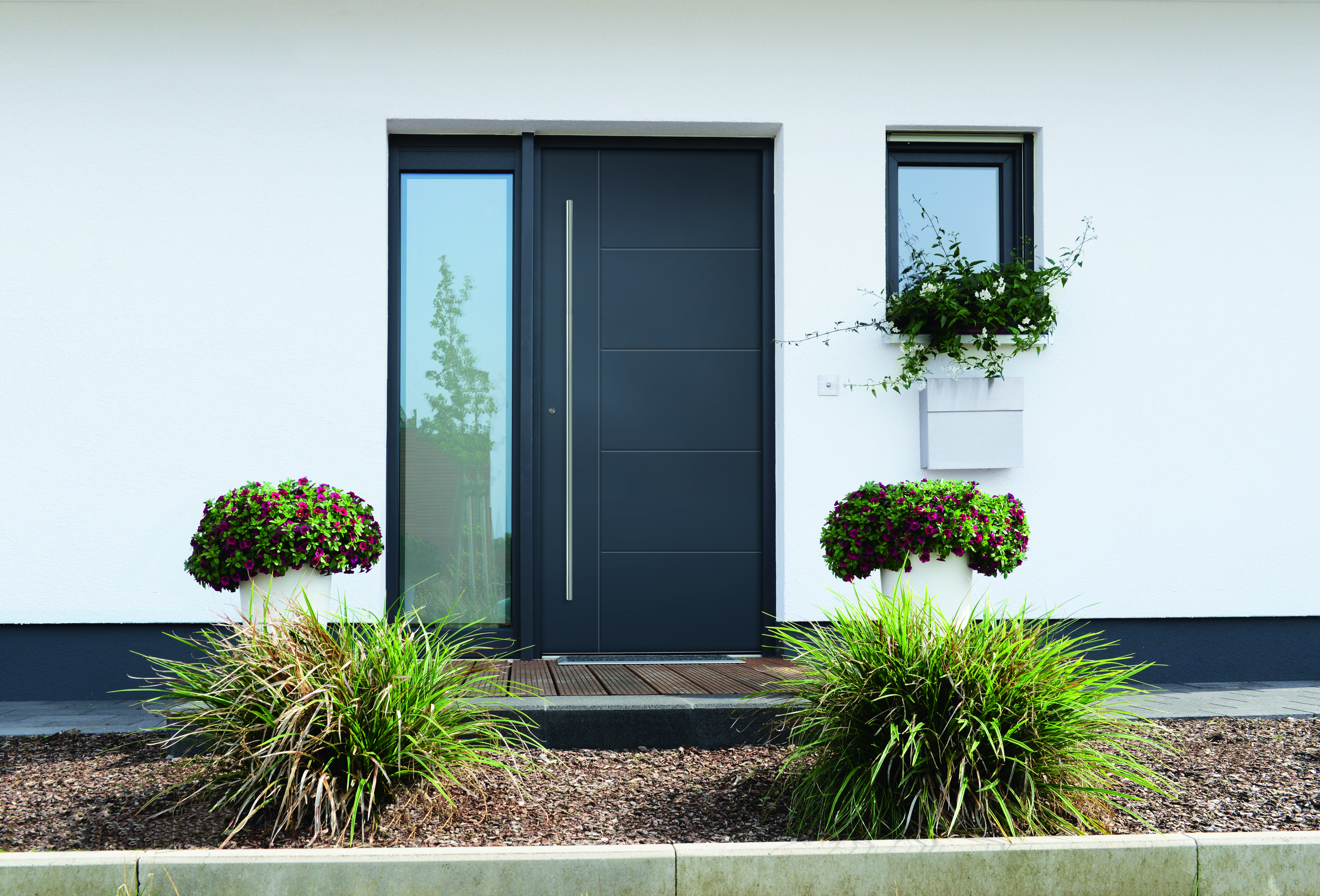 - durch beispielsweise eine 3- oder 5-Punkt-Hakenverriegelung wird ein hoher Einbruchschutz gewährleistetEin großer Vorteil der Kuststoffhaustüren ist die Vielzahl an Designs und die Freiheiten in der farblichen Gestaltung